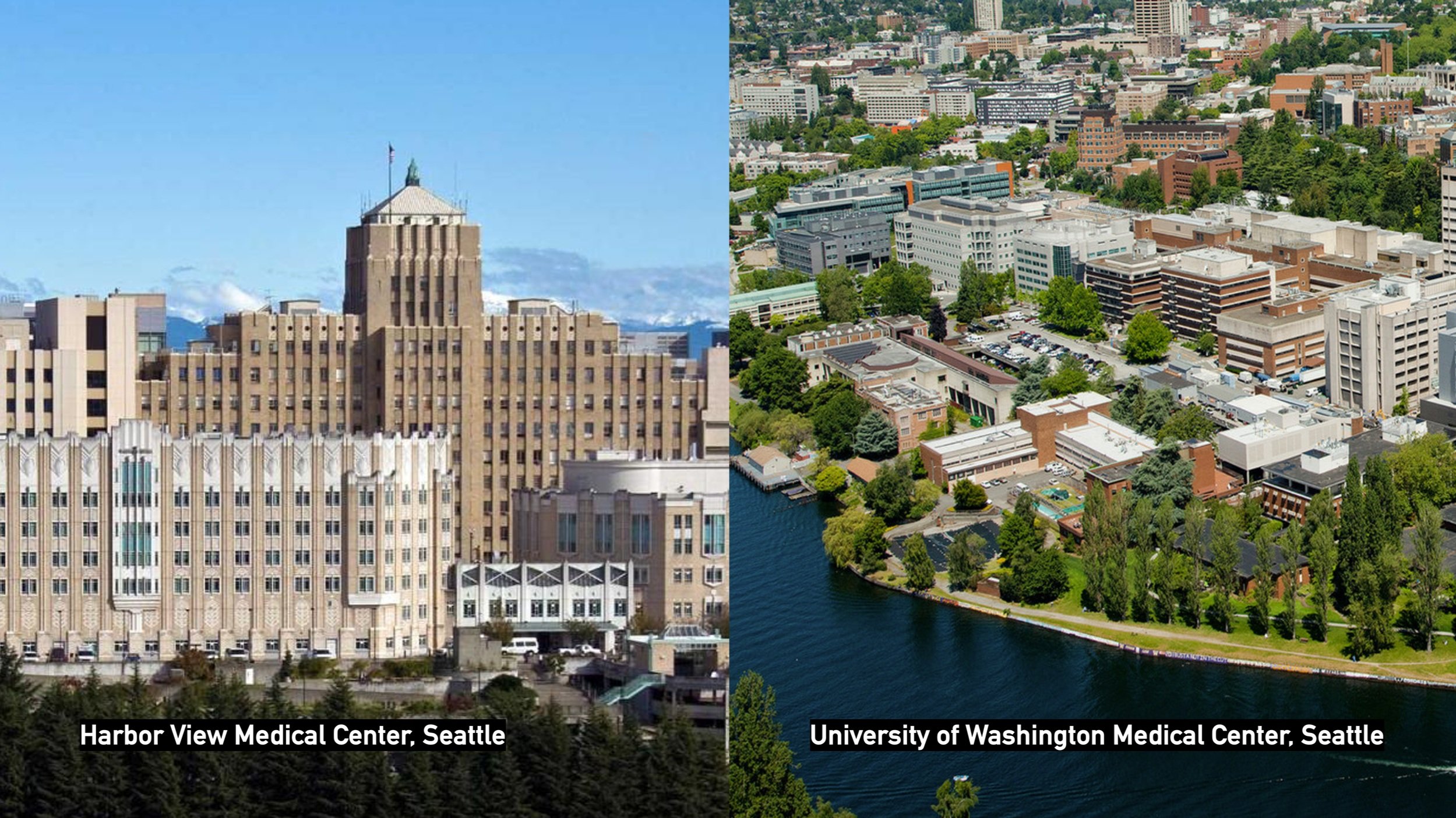 Harbor view on the left and UW medical center on the right, both hospitals have distinct flavours in terms of the patients they get and the specialities they have.