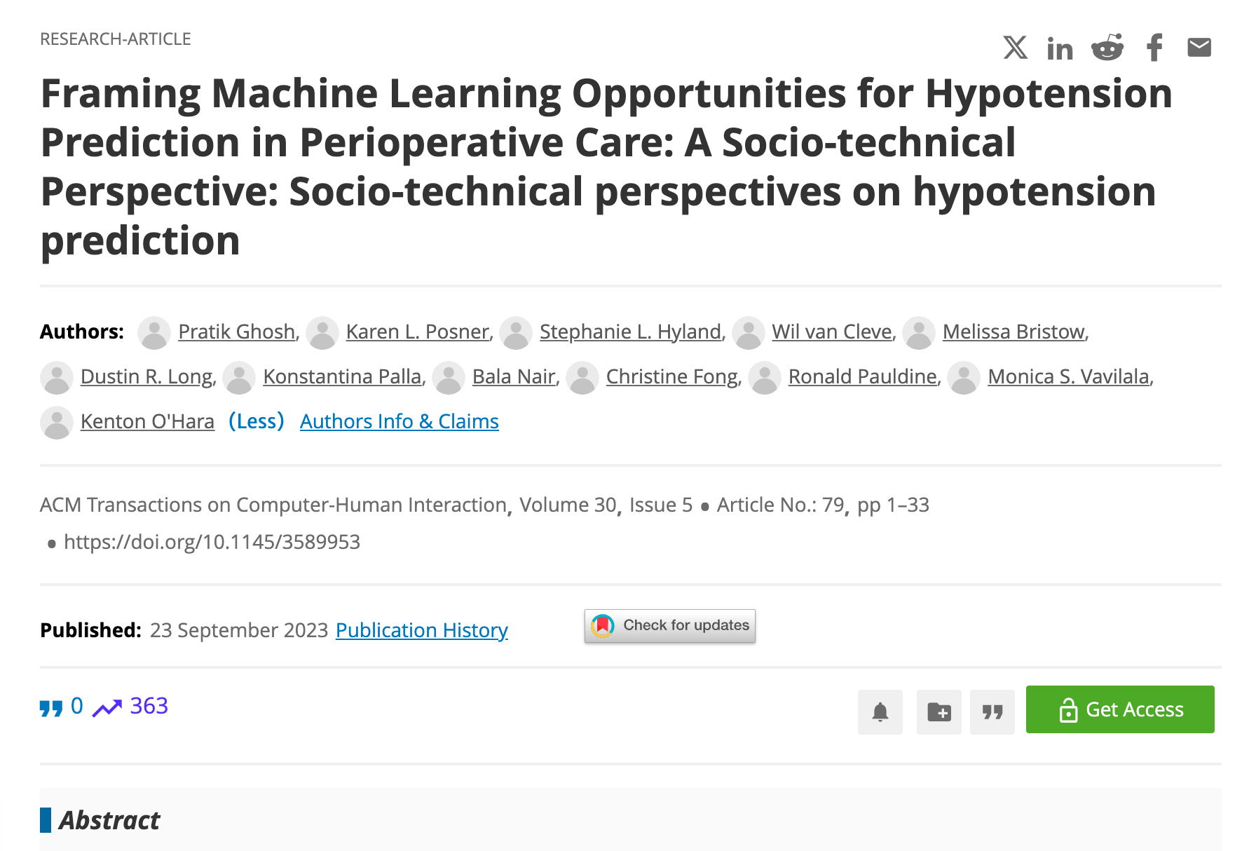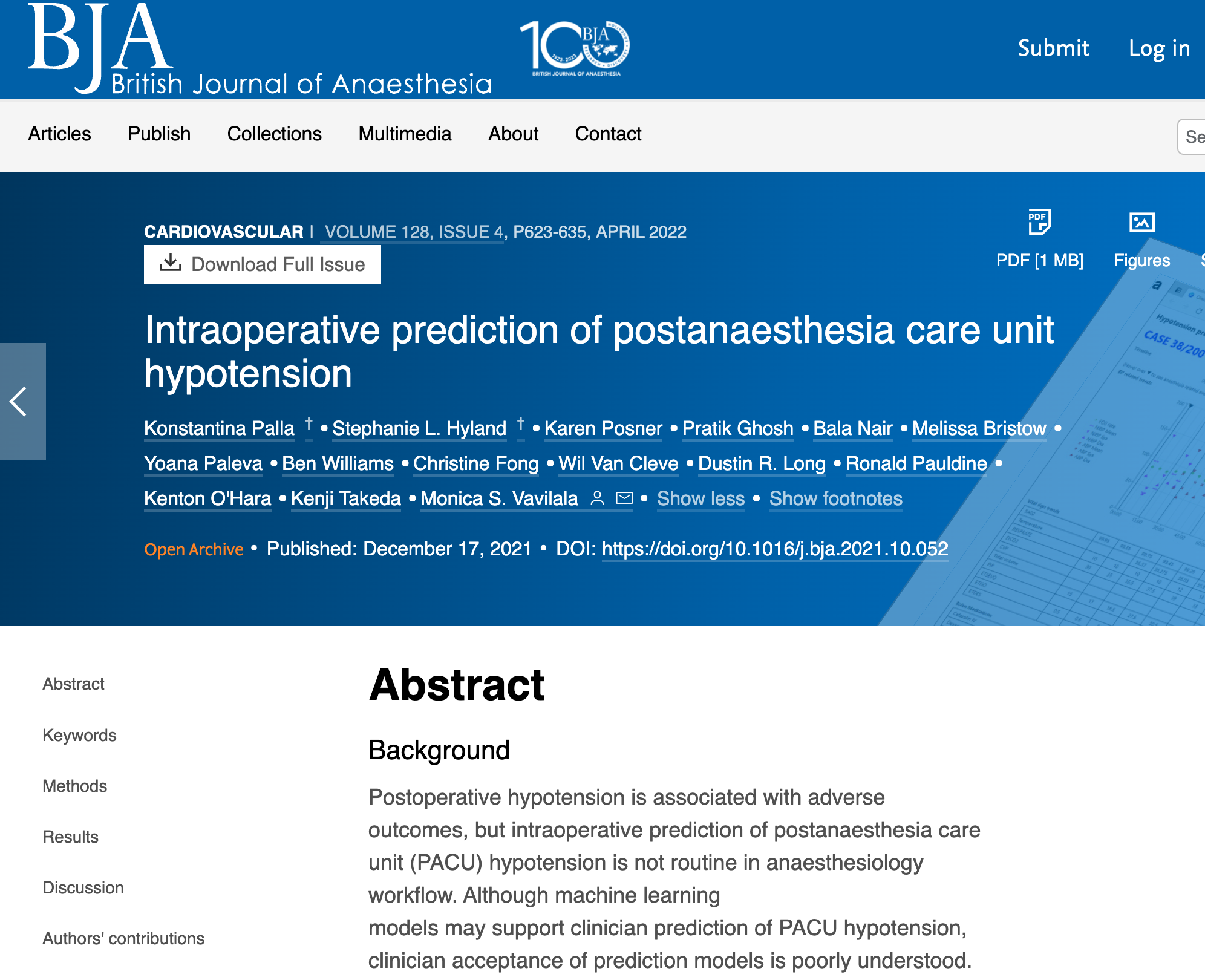 TL;DR: Postoperative hypotension is associated with adverse outcomes, but intraoperative prediction of post-anaesthesia care unit (PACU) hypotension is not routine in anaesthesiology workflow. Although machine learning models may support clinician prediction of PACU hypotension, clinician acceptance of prediction models is poorly understood. ๐ญ As a response to this, we conducted a thorough user research at two major hospitals and subsequently developed a clinically informed machine learning model using preoperative and intraoperative data.