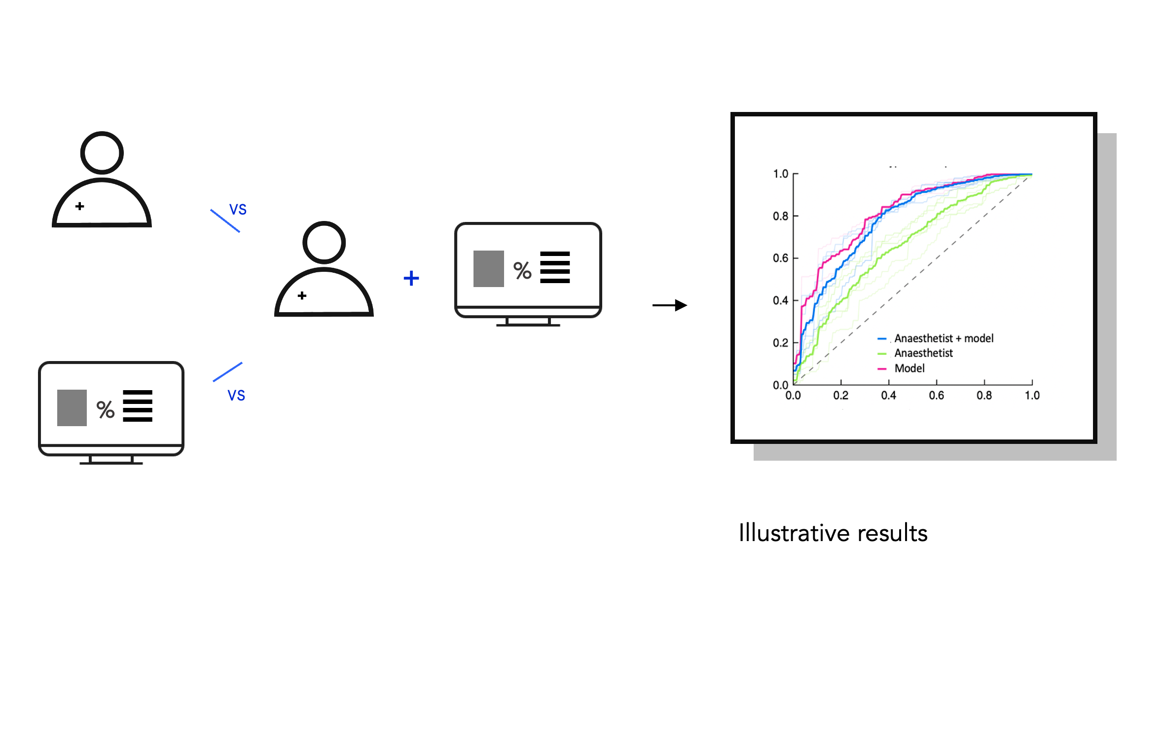 To see whether the model improves predictive performance over an anaesthetistโs ability we also ran an evaluation study. Using on pre-recorded inter-operative data from our test data set we replayed cases back to anaesthetists and asked them to say whether they thought the patient would become hypotensive or not. Then we showed them the ML outcome and asked the same question.