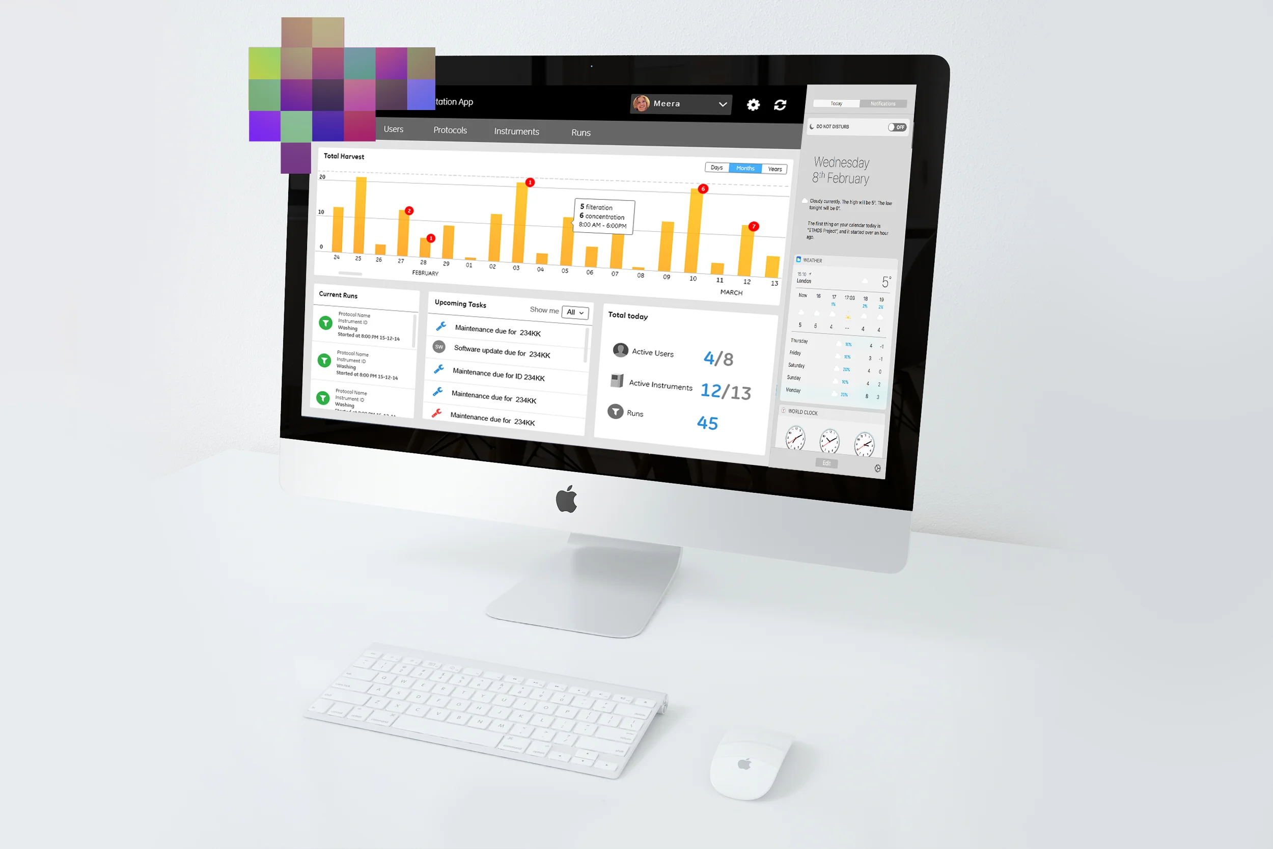 The second part of this project was a desktop based database management application which helped manage protocols and monitor all connected devices within a given facility. The app will assist Lab technicians enabling them to manage users, instruments and processes via one workstation.The design is minimal, gives the user just what is required for faster analysis and actions. My biggest learning from this project was the understanding of CRUD and the structure of a database management system.