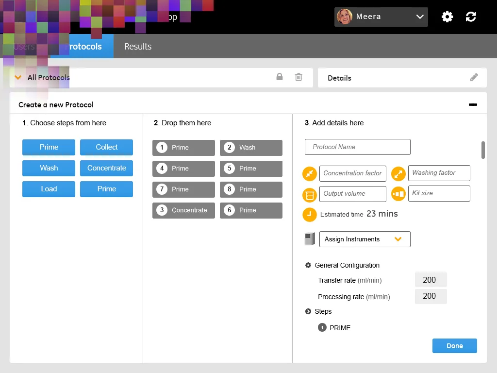 I quickly made this animated prototype to explain my idea of easy protocol creation. Below are screens showing how this further translated into the design.