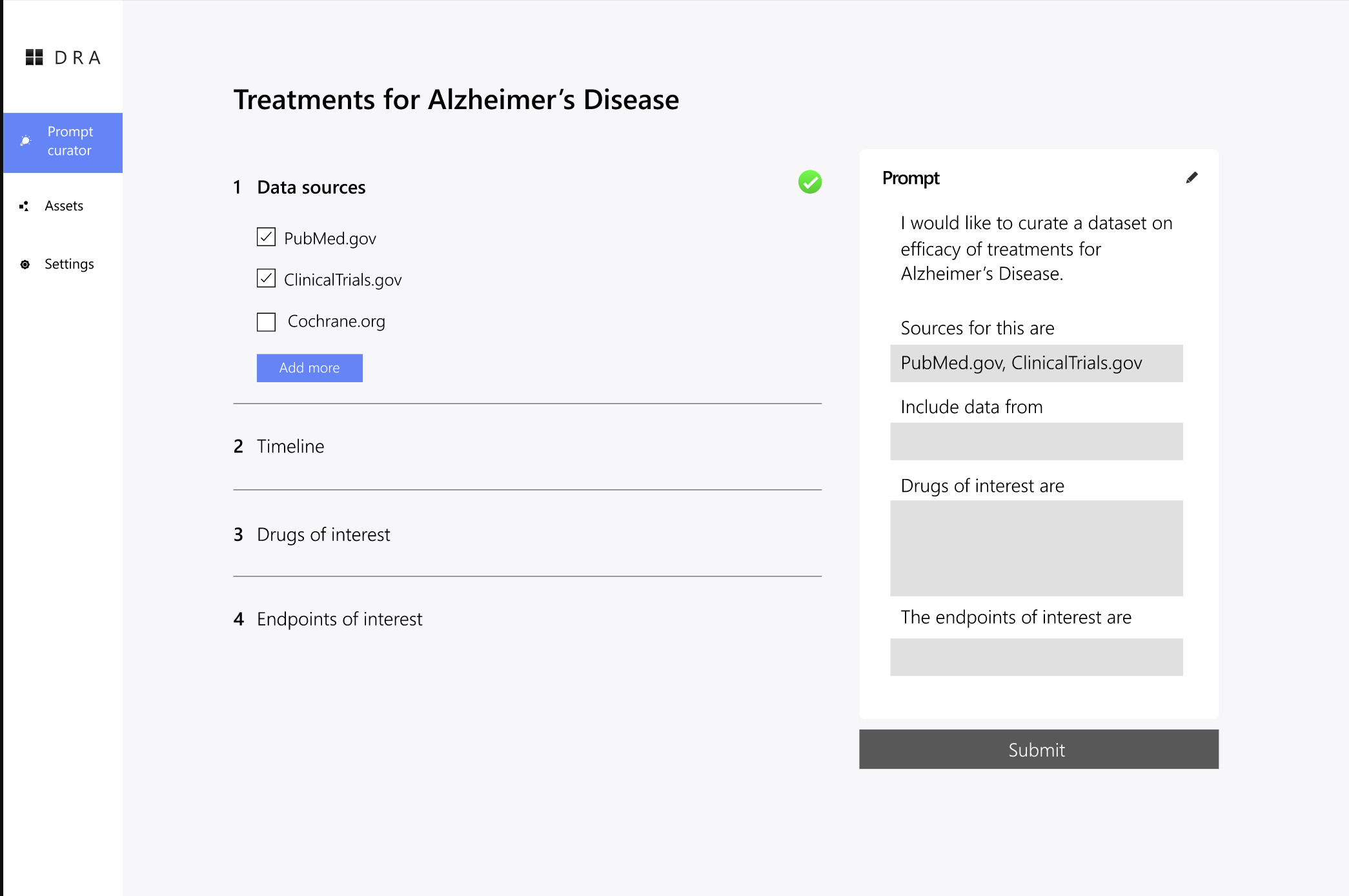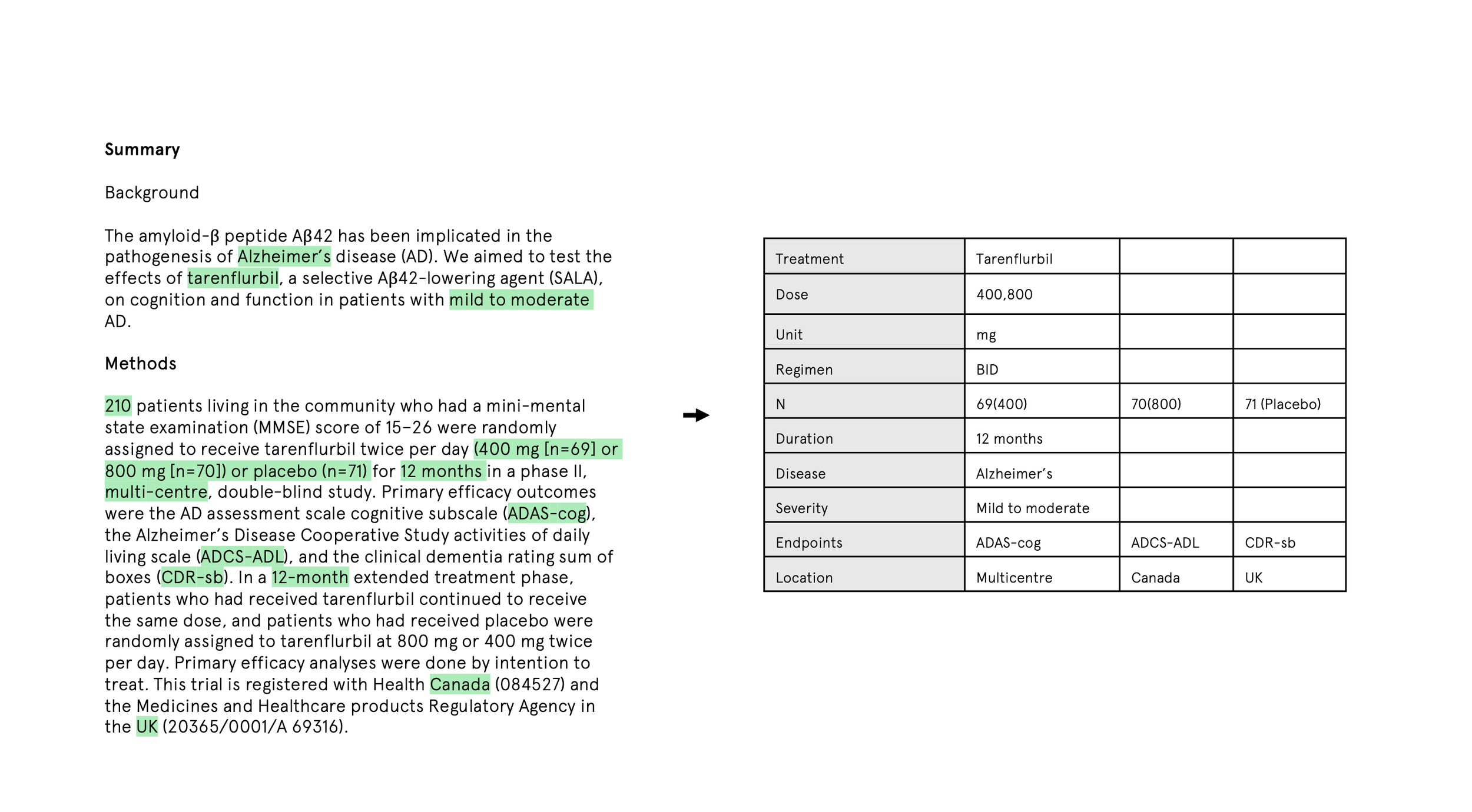 Clinical researchers often struggle to use these systems effectively because good prompting demands domain knowledge that lives in their heads, not on the page. To get the right data out, you need to specify drug names, targets, dosing regimens, patient populations, outcomes, and study designs with real precision. Asking a researcher to write that prompt from scratch is a bit like asking them to write a SQL query. They know what they want, but not the language needed to express it.